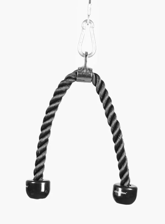 Accessoire pour machine à cable ou à poulie. Permet principalement le travail des triceps, mais aussi d’autres groupes musculaires grâce aux différentes options de préhension. Bouchon en caoutchouc pour ne pas perdre l’accessoire des mains. Hauteur anneau acier : 8 cm