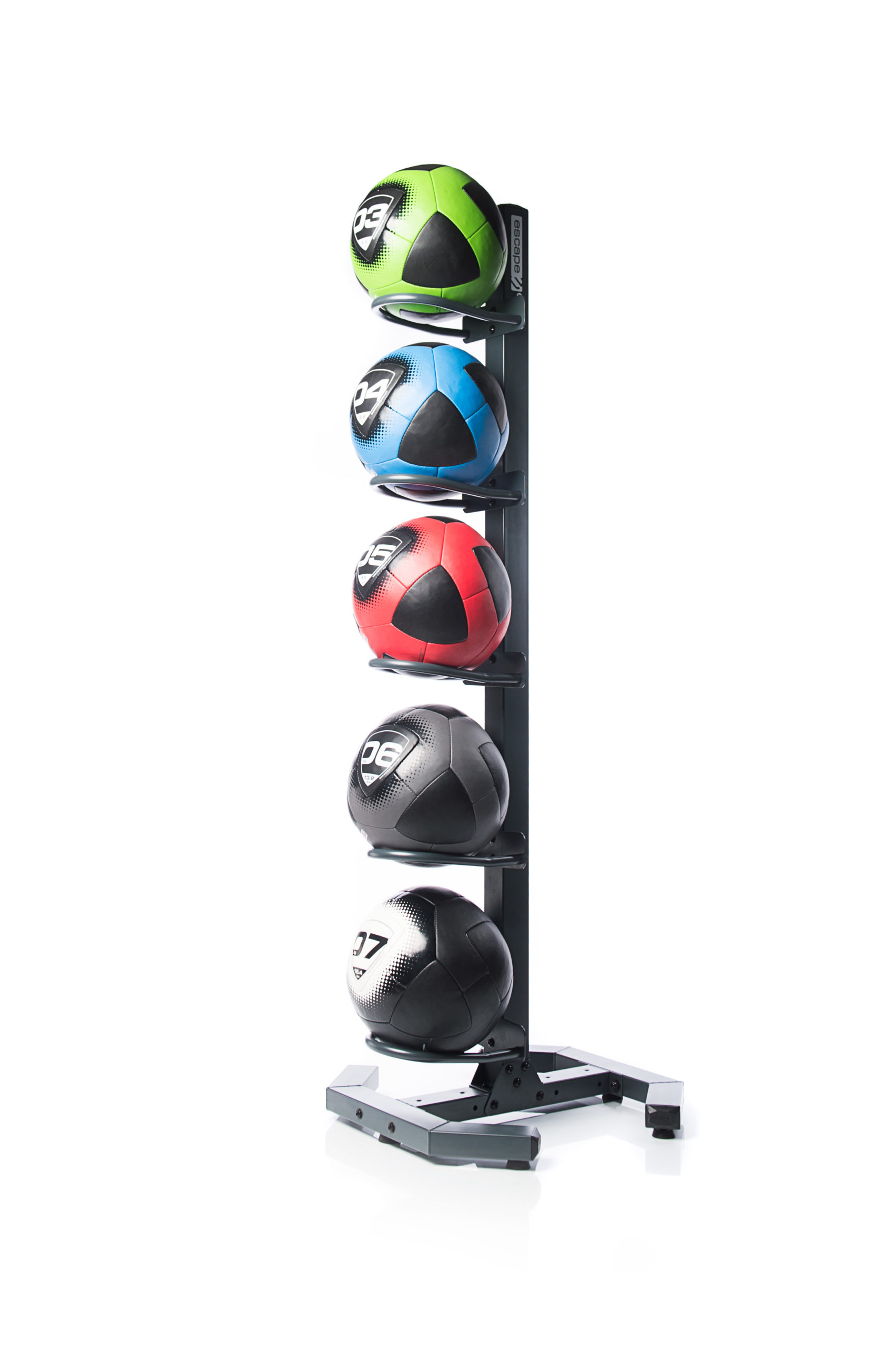 MULTI RACK. Conçu pour que vous n’ayez pas à sacrifier un précieux espace au sol pour le stockage, notre Multi Rack, en option simple face 5 ou double face 10, utilisera l’espace vertical pour stocker en toute sécurité les ballons d’entraînement fonctionnel hors du sol de la salle de sport ou du studio.